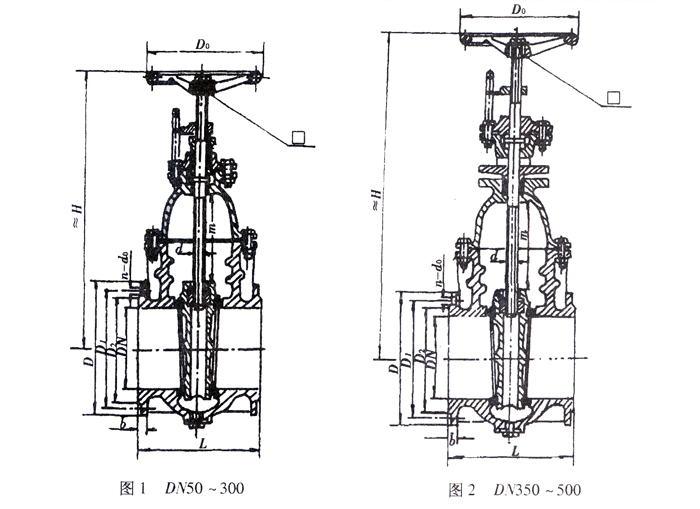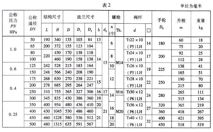 船用鑄鋼法蘭閘閥結構圖與尺寸表