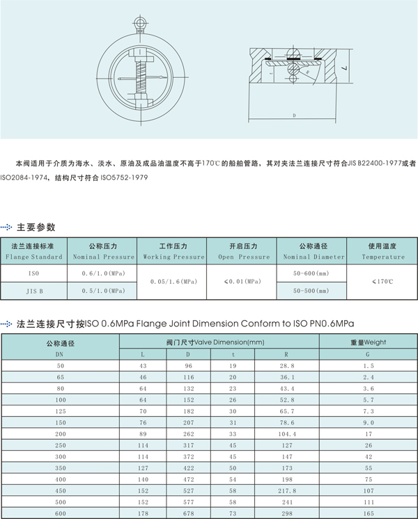 本文中所有文字、數據、圖片均只適用于參考。需要查看更多的船用不銹鋼蝶型止回閥性能參數、結構尺寸參數、價格等詳情,或要求高質量印刷樣本,請聯系我們。